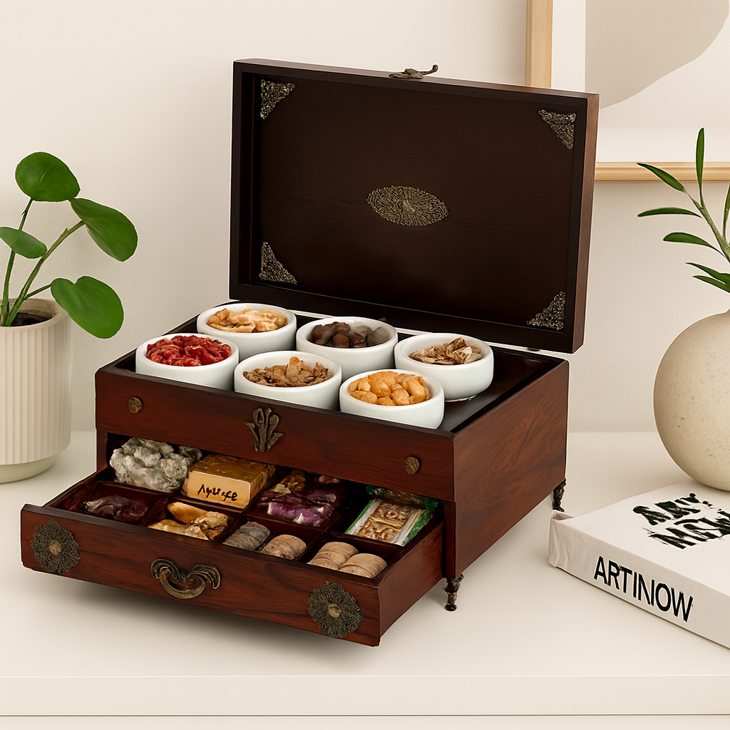 همانطور که میدانید، برای نگهداری خوراکیها، از ظروف شیشهای یا کریستال استفاده میشود که بیشتر مواقع نداشتن درب و شکننده بودن آنها مشکل ایجاد میکنند. به همین خاطر، استفاده از جعبه پذیرایی چوبی میتواند نیاز شما را برطرف کند. اکثر بانوان باسلیقه برای پذیرایی در مجالس و مهمانیهای خود به دنبال ظرفهایی شیک و خاص هستند. امروز استفاده از جعبه پذیرایی در میان افراد رواج پیدا کرده است که موجب ایجاد هیجان روی میز پذیرایی و داشتن جلوهای زیبا میشود. این مدل از جعبه پذیرایی لوکس باکس از چوب باکیفیت ساخته شده است که میتواند مورد توجه افراد قرار گیرد. این محصول مستطیلی شکل از چندین قسمت مختلف با ابعاد متفاوت طراحی شده است. این جعبههای زیبا و دربدار با وجود قسمتهای مختلفی که دارد به ما این امکان را میدهد تا بتوانیم مواد خوراکی متفاوتی را در آن قرار دهیم.
